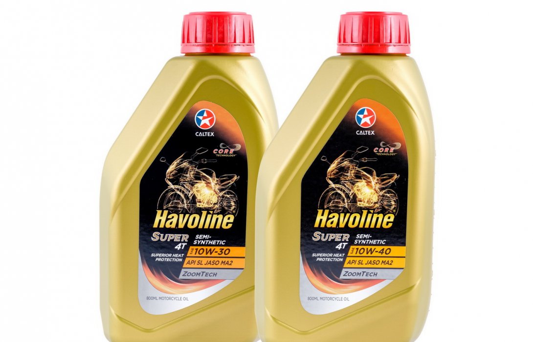 บริษัท เชฟรอน (ไทย) จำกัด ผู้ผลิตและจำหน่ายผลิตภัณฑ์น้ำมันหล่อลื่นคุณภาพระดับโลก คาลเท็กซ์ ฮาโวลีน แนะนำ ผลิตภัณฑ์ใหม่ น้ำมันเครื่องสำหรับรถจักรยานยนต์ ฮาโวลีน ซูเปอร์ 4 ที เซมิ – ซินเธติก SAE 10W – 30 และSAE 10W – 40 (Havoline Super 4T Semi – Synthetic SAE 10W – 30/SAE 10W – 40) น้ำมันเครื่องกึ่งสังเคราะห์ ผลิตด้วย C.O.R.E Technology ที่ช่วยลดคราบเขม่าสะสม ทำให้เครื่องยนต์สะอาดกว่าถึง 50% จึงทำงานได้เต็มสมรรถนะ และเพิ่มประสิทธิภาพด้วย เทคโนโลยี ZOOMTECH ช่วยปรับแรงเสียดทานให้เหมาะสมทำให้การจับคลัทช์ดีขึ้น ช่วยเพิ่มอัตราเร่งได้เต็มกำลัง บิดได้เต็มแรงทันทีที่สตาร์ทเครื่องยนต์ มั่นใจในทุกสภาวะการขับขี่ แม้ในสภาพการจราจรที่ติดขัด (Stop-and-go)