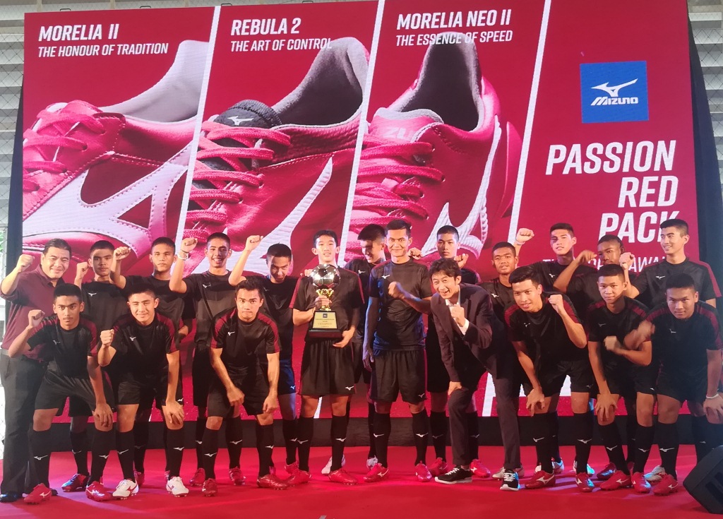 "มิซูโน่" แบรนด์เสื้อผ้าและอุปกรณ์กีฬาชั้นนำจากประเทศญี่ปุ่นจัดงาน "Mizuno Power of Passion Red"นำ 3 แข้งชื่อดังทีมชาติไทย "เจ" ชนาธิป สรงกระสินธ์ จากสโมสร คอนซาโดเล ซัปโปโร ทีมใน เจลีก ประเทศญี่ปุ่น และ"จ่าเย็น" มงคล ทศไกร จากสโมสรโปลิศ เทโร และ"ตั้ม" ธนบูรณ์ เกษารัตน์ จากสโมสรบางกอกกล๊าส ในฐานะแบรนด์แอมบาสเดอร์คนล่าสุด ร่วมทดลองใส่รองเท้าฟุตบอลสีใหม่ล่าสุด “ “Passion Red” ทั้ง 3 รุ่น ได้แก่ Rebula 2 V1, Morelia Neo II และ Morelia II ต้อนรับเทศกาลบอลโลก ณ สนามฟุตบอล SOLTILO PARK BANGKOK ถนนพระราม 4 โดยมี Mr.Kiyoshi Tatani President Mizuno Singapore Pte Ltd และ พิสุทธิ์ บุนนาค ผู้ช่วยผู้อำนวยการฝ่ายผลิตภัณฑ์ บริษัท ไอ.ซี.ซี.อินเตอร์ เนชั่นแนล จำกัด (มหาชน) ตัวแทนนำเข้าและจำหน่าย ผลิตภัณฑ์มิซูโน่ ร่วมเป็นประธานในพิธี