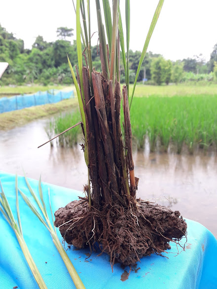 ผ่านไป 3-5 วัน หน่อข้าวเริ่มแตกขึ้นใหม่ ดูแลรักษาระดับน้ำอย่าให้แห้งเพราะหน่อข้าวจะอยู่โค่นต้นเดิม เมื่อหน่อข้าวอายุได้ 15-20 วัน จะสมบูรณ์มากพร้อมแยกหน่อไปปลูก วิธีการแยกหน่อจากตอซังอย่าให้รากต้นกล้าขาดแล้วมัดเป็นกำๆ แยกหน่อที่สมบูรณ์ไปปลูกเมื่อนำหน่อข้าวไปปลูกในพื้นที่ที่เตรียมไว้โดยใช้ต้นกล้าหรือหน่อข้าว 1-3 ต้นต่อกอ