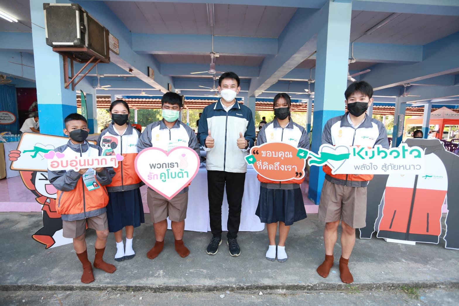 พร้อมกันนี้ ยังได้รับความร่วมมือจากร้านค้าผู้แทนจำหน่ายสยามคูโบต้าในพื้นที่ ดำเนินกิจกรรม “คูโบต้าเคียงข้างสร้างอนาคต” มอบอุปกรณ์กีฬาเพื่อเสริมสร้างทักษะกีฬาและการออกกำลังกายให้แก่น้องๆ นักเรียน และมอบอุปกรณ์ป้องกันและตรวจคัดกรองโควิด-19 ให้แก่หน่วยงานราชการในพื้นที่ นอกจากนี้ สยามคูโบต้ายังได้ร่วมกับกรมป้องกันและบรรเทาสาธารณภัย (ปภ.) โดยส่งมอบเสื้อกันหนาวจำนวน 1,000 ตัว เพื่อเป็นอีกหนึ่งช่องทางในการกระจายไปยังพี่น้องประชาชนที่ประสบภัยหนาว และขาดแคลนเครื่องนุ่งห่มเพิ่มเติมด้วย