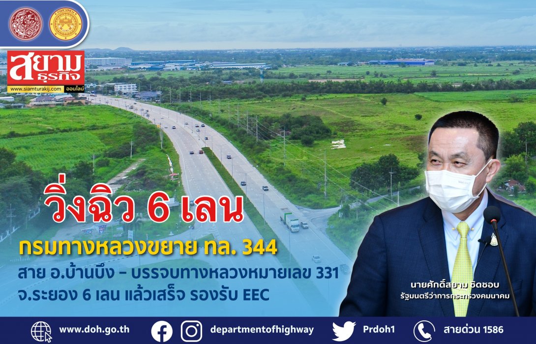 กรมทางหลวง โดย สำนักก่อสร้างทางที่ 2 ดำเนินการโครงการก่อสร้างขยายทางหลวงหมายเลข 344 สาย อ.บ้านบึง – บรรจบทางหลวงหมายเลข 331 (หนองปรือ) รวมสะพานข้ามแยกหนองชาก แล้วเสร็จ ระยะทางยาวประมาณ 12.3 กิโลเมตร ในพื้นที่จังหวัดชลบุรี ตามนโยบายของ นายศักดิ์สยาม ชิดชอบ รัฐมนตรีว่าการกระทรวงคมนาคม ที่ต้องการพัฒนาทางหลวงรองรับระเบียงเศรษฐกิจภาคตะวันออก