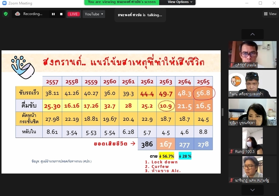 สื่อมวลชนประชุมร่วมภาคีสสส.ถกปัญหาเทศกาลสงกรานต์ ปี 65 รุนแรงตายคาที่ เพิ่มขึ้นจากขับรถเร็ว แฉสูญเสียไม่ต่างจากสงคราม 15 ปีสงกรานต์ไทยตายไป 6,183 คน เจ็บอีกเกือบ 400,000 คน เรียกร้องสร้างจิตสำนึกรับผิดชอบ เพิ่มบทบาทท้องถิ่น บังคับใช้กฎหมายจริงจัง อย่าทำแบบไฟไหม้ฟาง