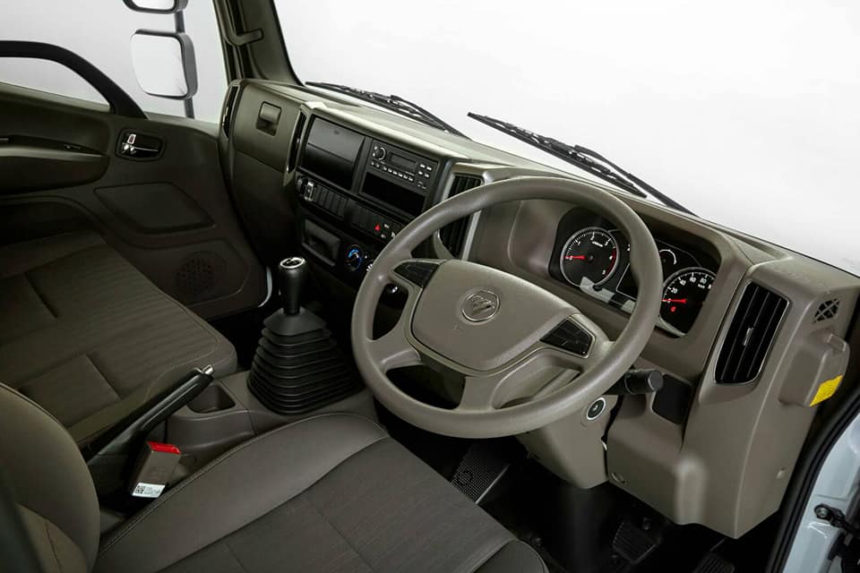 ห้องโดยสารที่ออกแบบใหม่ทั้งหมด กว้างกว่าทุกมิติ ให้ความรู้สึกเหมือนขับรถ Passenger ทั่วไป ด้วยวัสดุเกรดพรีเมี่ยม พร้อมอุปกรณ์อำนวยความสะดวกครบครัน ไม่ว่าจะเป็น กระจกไฟฟ้าระบบออโตเมติกทั้งผู้ขับและผู้โดยสาร เรือนไมล์ใหม่ พร้อมจอแสดงผลแบบ LCD ขนาดใหญ่ 3.2 นิ้ว แสดงการทำงานของเครื่องยนต์ และระบบเพื่อความปลอดภัย พวงมาลัยดีไซน์ใหม่ แบบ 4 ก้าน ทำให้ควบคุมรถได้คล่องตัวแม้ในทางแคบ ระบบเครื่องปรับอากาศใหม่หมด สะดวกสบายด้วยปุ่มปรับไฟฟ้า เย็นฉ่ำทั่วถึง พร้อมกันนี้ยังให้ความสะดวกสบายด้วยเบาะนั่งระดับพรีเมี่ยม ตัดรับเข้าสรีระสำหรับผู้ขับขี่ ช่วยลดความเมื่อล้า โดยสามารถปรับองศาการนั่งได้หลากหลาย สะดวกสบายสุดในการขึ้นลงรถด้วยประตูปรับได้ 3 ระดับที่สามารถเปิดได้กว้างสุดถึง 90 องศา และที่เหนือไปกว่านั้นคือความเงียบในห้องโดยสารที่ให้ความเงียบสุด 65dB ปิดกั้นเสียงรบกวนจากภายนอกด้วยวัสดุกันเสียง และซีลยางขอบประตูมาตรฐานยุโรป