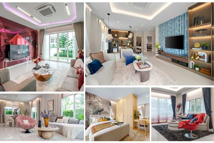 นอกจากนี้ ยังนำแนวคิด Sustainable Living มาใช้ในการตกแต่งภายในบ้านตัวอย่างและอาคารสโมสร โดยเลือกใช้วัสดุที่เป็นมิตรต่อสิ่งแวดล้อมและปลอดภัยต่อผู้อยู่อาศัย เช่น วอลเปเปอร์ ใช้หมึกพิมพ์ปลอดสารระเหย, แผ่นลามิเนตสำหรับเฟอร์นิเจอร์ Built-in ที่ป้องกันไฟ เชื้อรา และแบคทีเรีย ได้มาตรฐานระดับสากล Carbon Reduction Label, ผ้าม่าน KLASM ปลอดฟอร์มาลดีไฮด์ ช่วยลดการสะสมสารระเหยในอากาศ อีกทั้งไอเดียตกแต่งด้วยงานฝีมือและภูมิปัญญาท้องถิ่น เช่น ขอบผ้าม่าน นำผ้าย้อมครามแท้จากกลุ่มทอผ้ามัดหมี่ จังหวัดสกลนคร และ โคมไฟหวายจากชุมชนสามโคก จังหวัดปทุมธานี ซึ่งผ่านการรับรองฉลากเขียว (Green Label) และฉลากลดคาร์บอน (Carbon Reduction Label) เป็นต้น