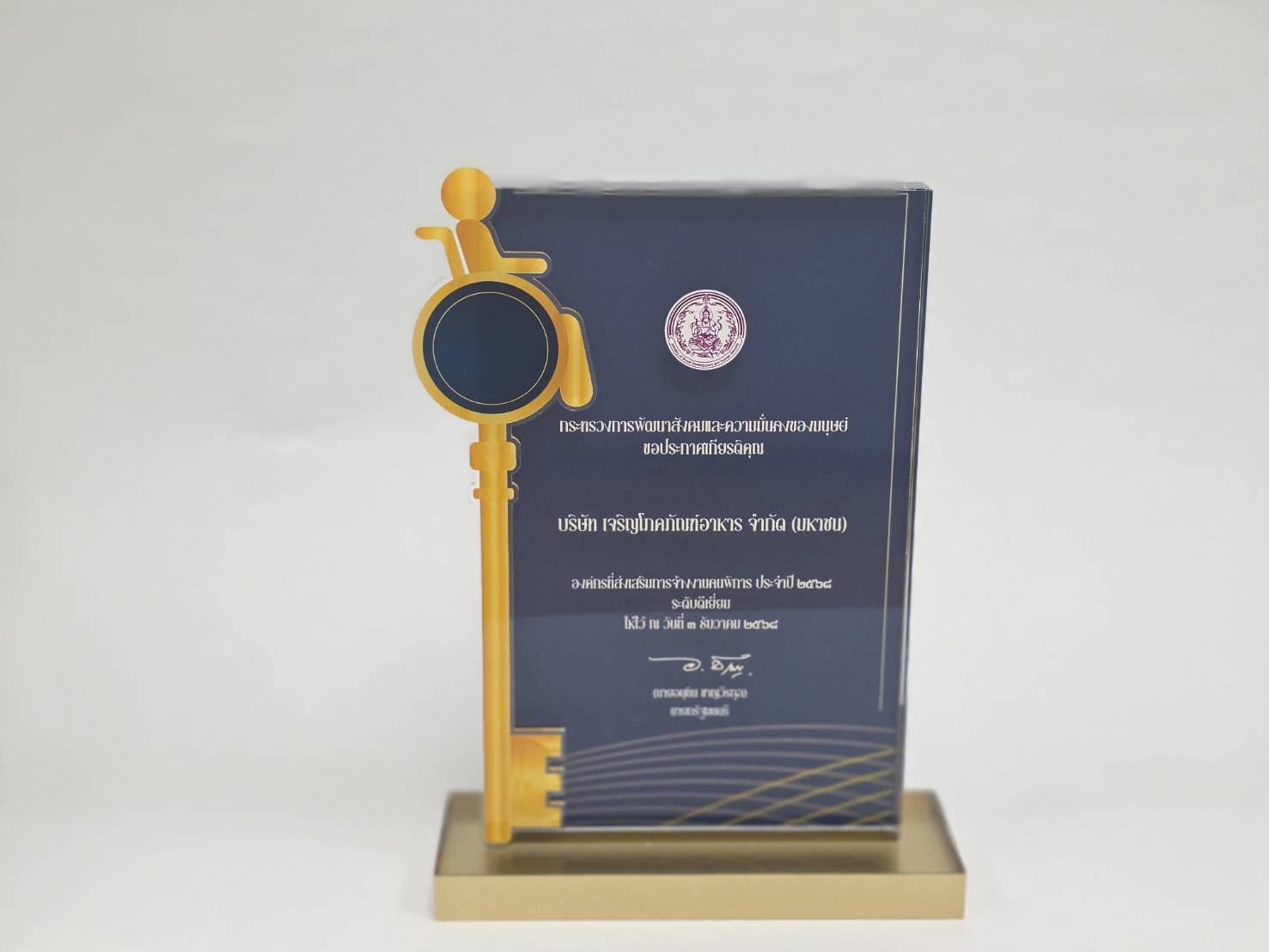 กระทรวงการพัฒนาสังคมและความมั่นคงของมนุษย์ (พม.) โดย กรมส่งเสริมและพัฒนาคุณภาพชีวิตคนพิการ จัดงานคนพิการสากล เพื่อสร้างความตระหนัก ความเท่าเทียมและการมีส่วนร่วมของ “คนพิการ” ในงานดังกล่าว บริษัท เจริญโภคภัณฑ์อาหาร จำกัด (มหาชน) หรือ ซีพีเอฟ และบริษัทในเครือซีพีเอฟ เข้ารับ “รางวัลองค์กรที่ส่งเสริมการจ้างงานคนพิการ ประจำปี 2568 ระดับดีเยี่ยม ต่อเนื่องเป็นปีที่ 9 ในฐานะองค์กรที่สร้างโอกาสให้คนพิการได้ทำงานที่มั่นคงและมีรายได้ที่แน่นอน สามารถพึ่งพาตนเองได้ ดูแลครอบครัว ใช้ชีวิตร่วมกับผู้อื่นในสังคมอย่างมีความสุข และภาคภูมิใจ เป็นพลังขับเคลื่อนการพัฒนาสังคมที่มั่นคงและยั่งยืน