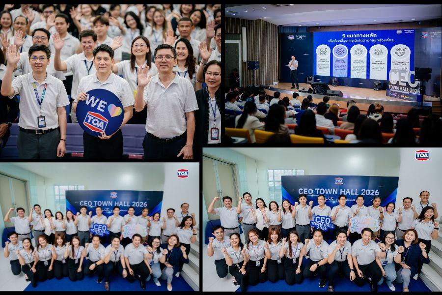 บริษัท ทีโอเอ เพ้นท์ (ประเทศไทย) จำกัด (มหาชน) หรือ TOA ตอกย้ำศักยภาพผู้นำอุตสาหกรรม สีทาอาคารอันดับ 1 ของไทยที่ครองใจผู้บริโภค พร้อมก้าวสู่ผู้นำอุตสาหกรรมตกแต่งพื้นผิวและวัสดุก่อสร้าง เปิดศักราชปี 2569 อย่างยิ่งใหญ่ในงาน ‘CEO Town Hall 2026’ ประกาศวิสัยทัศน์ใหม่ ‘แต่งเติมความสุขของการอยู่อาศัยให้ทุกคน (Inspiring Happiness in Everyday Living)’ พร้อมขับเคลื่อนองค์กรด้วย 5 กลยุทธ์เสาหลักทั้งการตั้งเป้าเติบโตของยอดขายอย่างต่อเนื่อง ควบคู่การ Upskill ให้พนักงานและองค์กรเต็มสูบ ด้วยเครื่องมือ AI พร้อมเดินหน้าพันธกิจรักษ์โลก Net Zero สู่การเป็นผู้นำ Total Solutions อย่างยั่งยืน