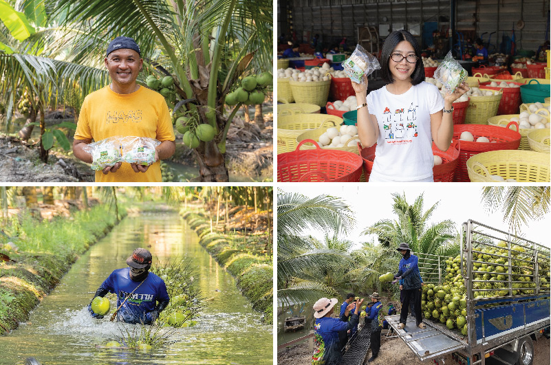 เบื้องหลังมะพร้าวพร้อมทาน โคโค่ เฟรส ทุกลูก มาจากเครือข่ายเกษตรกร น้องแตงโม เกษตรกรและเจ้าของล้งมะพร้าวรุ่นใหม่ วัย 31 ปี จากจังหวัดราชบุรี ทำหน้าที่รวบรวม คัดเลือก และแปรรูปมะพร้าวจากสวนในชุมชน ไม่ได้เป็นเพียงชาวสวนทั่วไป แต่เป็นผู้สร้าง ล้งมะพร้าวในชุมชน ที่ดูแลกระบวนการตั้งแต่การรับซื้อมะพร้าวจากเกษตรกรรายย่อย ไปจนถึงการแปรรูปขั้นต้นก่อนเข้าสู่โรงแพ็ก
