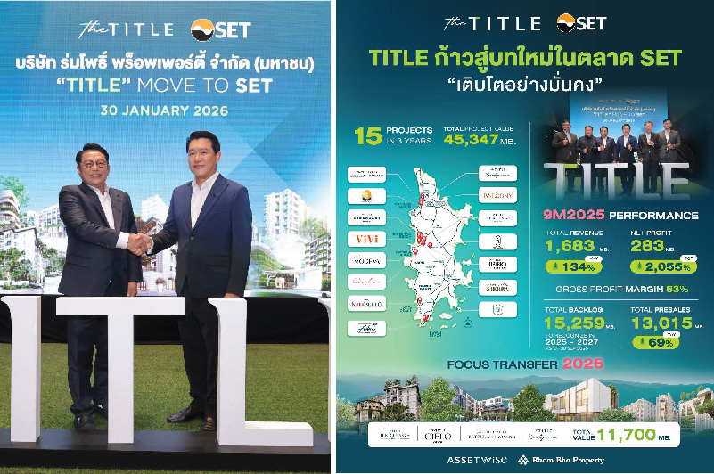 ทั้งนี้ ตลาดหลักทรัพย์ mai ถือเป็นเวทีสำคัญที่ TITLE เติบโตและพัฒนามาอย่างต่อเนื่อง โดยเป็นตลาดที่เล็งเห็นศักยภาพของบริษัทตั้งแต่ช่วงเริ่มต้น และมีบทบาทสำคัญในการวางรากฐานด้านระบบบริหารจัดการ มาตรฐานการกำกับดูแลกิจการ และวินัยทางธุรกิจ จนบริษัทสามารถเติบโตได้อย่างมั่นคง การย้ายเข้าซื้อขายในตลาดหลักทรัพย์แห่งประเทศไทย (SET) จึงถือเป็นก้าวต่อไปตามพัฒนาการขององค์กร สะท้อนถึงขนาดธุรกิจ ศักยภาพ และความพร้อมในการยกระดับสู่เวทีที่ใหญ่ขึ้น เพื่อรองรับการขยายการลงทุน และการเติบโตอย่างยั่งยืนในระยะยาว