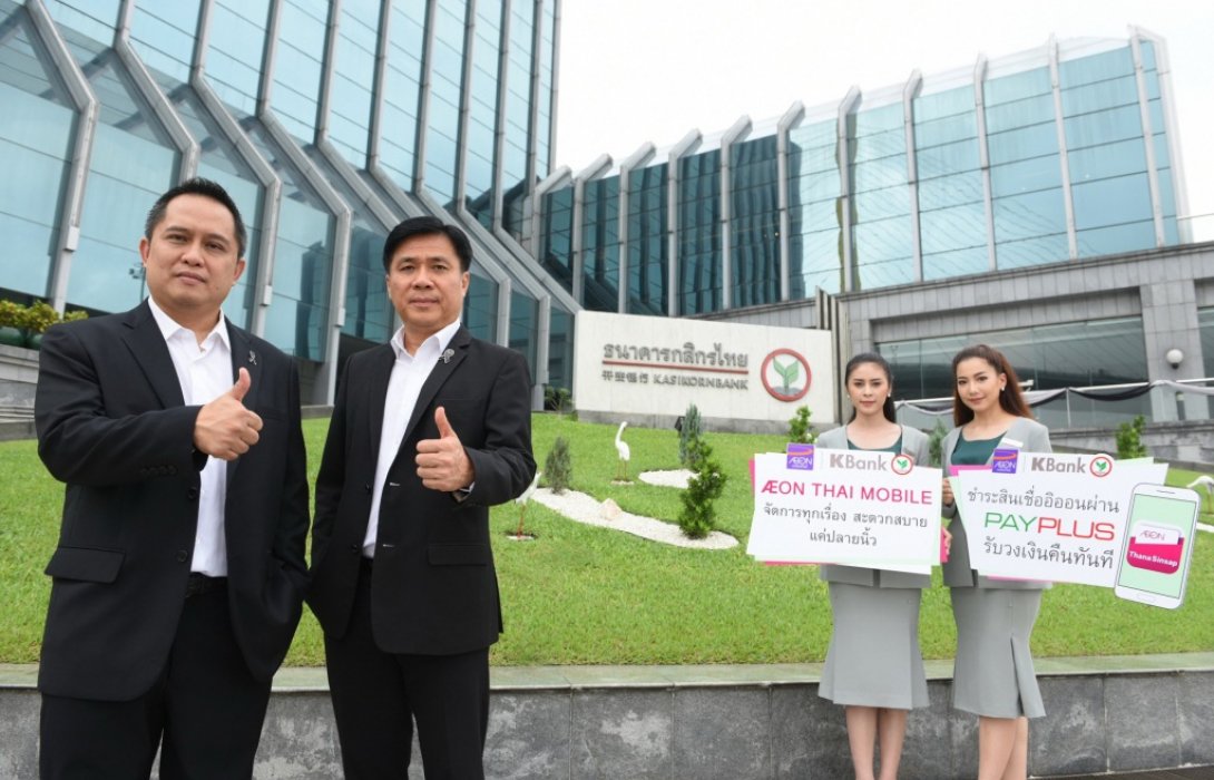 นายอมร สุวจิตตานนท์ ผู้อำนวยการฝ่ายอาวุโส ฝ่ายบริหารผลิตภัณฑ์ชำระเงินลู กค้าบุคคลและปริวรรตเงินตรา ธนาคารกสิกรไทย ร่วมกับนายนันทวัฒน์ โชติวิจิตร กรรมการบริหาร ฝ่ายการตลาด บริษัท อิออน ธนสินทรัพย์ (ไทยแลนด์) จำกัด (มหาชน) เปิดให้บริการชำระสินเชื่ออิ ออนผ่านบริการ Pay PLUS ของธนาคารกสิกรไทย บนแอปพลิเคชั่น “ÆON THAI MOBILE” ได้เป็นธนาคารแรก ซึ่งจะช่วยอำนวยความสะดวกให้ลู กค้าผู้ถือบัตรอิออนกว่า 7 ล้านบัตร ในการชำระสินเชื่ออิออน และลูกค้าจะได้รับวงเงินคืนทั นที ณ ธนาคารกสิกรไทย สำนักงานใหญ่