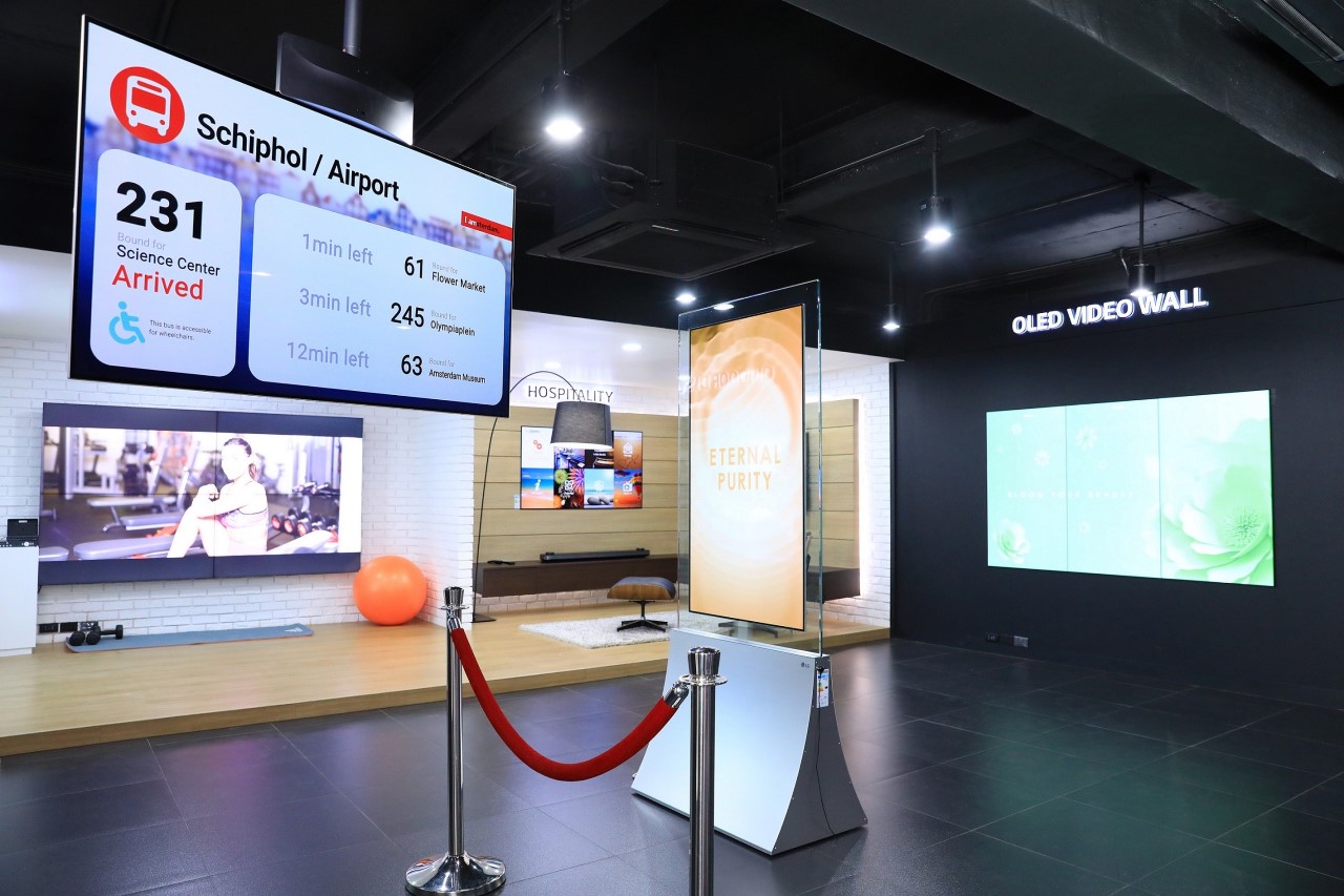 LG Information Display Solutions Center ตั้งอยู่ ณ ชั้น 5 ของอาคารอรรถกระวี 2 ซอยสุขุมวิท 26 ด้วยงบประมาณการลงทุนกว่า 10 ล้านบาท จัดแสดงผลิตภัณฑ์จอดิจิตอลเชิงพาณิชย์อย่างครบครัน โดยมี ไฮไลต์ที่นำมาจัดแสดงเป็นครั้งแรก คือ High Brightness VDO Wall จอวิดีโอ วอลล์ที่ให้ความสว่างสูง โดดเด่นด้วย Intelligent Sensor ปรับความสว่างหน้าจออัตโนมัติตามระดับความสว่างของแสงโดยรอบ มาพร้อมหน้าจอ 55 นิ้ว ซึ่งสามารถนำมาต่อกันได้ตามขนาดที่ต้องการ โดยมีความบางของขอบจอที่ต่อกัน เพียง 3.5มิลลิเมตรเท่านั้น In-glass Wallpaper OLED Signage นวัตกรรมแห่งจอดิจิตอลที่สามารถ แสดงภาพได้ทั้งสองด้าน ติดตั้งได้ทั้งแบบแขวนและแบบตั้ง เพิ่มความน่าสนใจให้แก่คอนเทนต์ที่นำเสนอ ดีไซน์สุดล้ำ ด้วยจอบางเฉียบ 13มิลลิเมตร และ VDO Wall OLED Signage ที่ให้ภาพคมชัดสีสัน เสมือนจริงบนมิติ ความดำสนิท และสามารถนำจอมาต่อกันได้โดยยังคงแสดงภาพในแนวนอนได้อย่าง สมบูรณ์แบบ