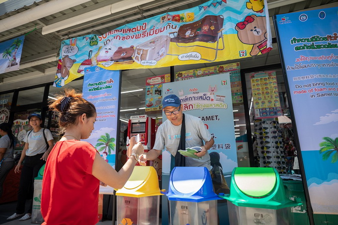 ซีพี ออลล์ จึงได้จัดโครงการ “รักษ์เกาะเสม็ด ร่วมใจเลิกใช้ถุงพลาสติก”เพื่อให้คนไทยและนักท่องเที่ยวเลิกใช้ถุงพลาสติก สร้างพฤติกรรมให้เกิดแนวคิดท่องเที่ยวเชิงอนุรักษ์สิ่งแวดล้อม พร้อมตอกย้ำเจตนารมณ์ของซีพี ออลล์ที่เดินหน้านโยบาย 7 GO Green โดยเริ่มต้นที่การ “ลดและเลิกใช้ถุงพลาสติก” เพื่อช่วยลดปริมาณขยะและให้ความสำคัญกับการดูแลแบ่งปันร่วมกับชุมชนและสังคมเพื่อให้เป็นไปตามปณิธานของซีพี ออลล์ นั่นคือ “ร่วมสร้างสรรค์และแบ่งปันโอกาสให้ทุกคน” โดยมีแนวทางรณรงค์เลิกใช้ถุงพลาสติกผ่านร้านเซเว่นอีเลฟเว่นทุกสาขาที่ตั้งอยู่บนเกาะเสม็ด ด้วยการงดบริการถุงพลาสติกหูหิ้วทุกขนาดกับลูกค้า, ยกเลิกแคปซีล (การใช้พลาสติกหุ้มฝาขวดนํ้าดื่ม), ยกเลิกการใช้พลาสติกหุ้มหลอด โดยใช้กล่องใส่หลอดกดแทน, การตั้งถังขยะแยกประเภทบริเวณหน้าร้านเซเว่น อีเลฟเว่นทุกสาขา เพื่อสนับสนุนแนวทางการจัดการขยะตั้งแต่ต้นทางเพื่อชุมชน พร้อมติดตั้งสื่อส่งเสริมให้ลดใช้ถุงพลาสติก รวมทั้งจัดกิจกรรมร่วมกับเยาวชนและชุมชนรณรงค์ลดและเลิกใช้ถุงพลาสติก เพื่อก่อให้เกิดพลังในชุมชน