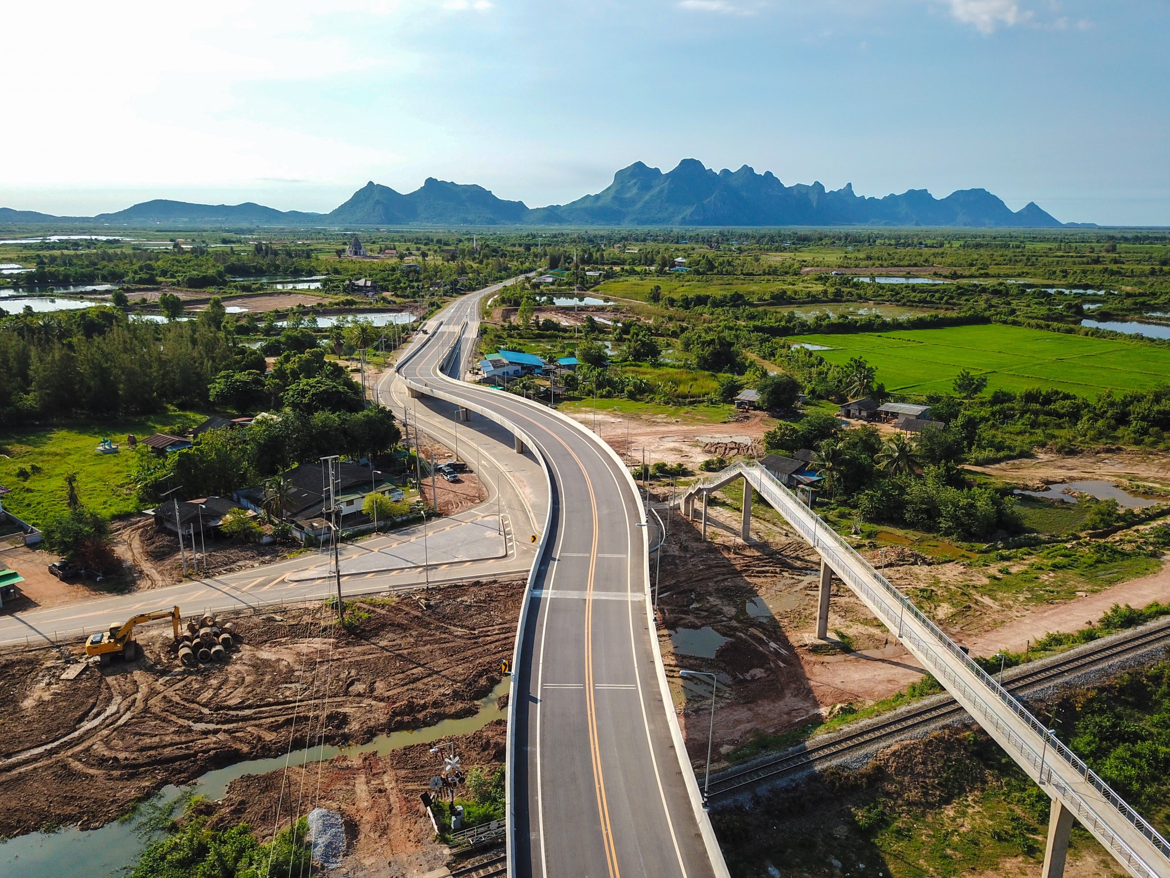 2. สะพานข้ามทางรถไฟและอุโมงค์ลอดทางรถไฟ จุดตัดทางรถไฟกับถนนทางหลวงชนบทสาย ปข.1021 แยก ทล.4 – บ้านหน้าป้อม อำเภอสามร้อยยอด จังหวัดประจวบคีรีขันธ์ ก่อสร้างทางเป็นสะพานข้ามทางรถไฟ ที่มีพื้นสะพานเป็นโครงสร้างพิเศษ ความยาว 340 เมตร พร้อมทางกลับรถใต้สะพานและถนนต่อเชื่อมสองฝั่ง ความยาวรวม 985 เมตร พร้อมก่อสร้างอุโมงค์ทางลอดทางรถไฟ ความยาว 126.11 เมตร สำหรับพาหนะขนาดเล็ก เพื่ออำนวยความสะดวกให้ประชาชนและเกษตรกรในพื้นที่ และได้ก่อสร้างสะพานลอยคนเดินข้าม ใช้งบประมาณก่อสร้างทั้งสิ้น 175.370 ล้านบาท เมื่อเปิดใช้งานสามารถช่วยแก้ไขปัญหาการเกิดอุบัติเหตุบริเวณจุดตัดทางรถไฟอย่างสมบูรณ์ ทำให้เกิดความสะดวกรวดเร็วในการสัญจรของรถไฟและยานพาหนะบนถนนทางหลวงชนบท รวมทั้งเป็นการสนับสนุนโครงการพัฒนาการขนส่งระบบรางโครงการรถไฟทางคู่ของการรถไฟแห่งประเทศไทย โดยสะพานดังกล่าวจะมีพิธีเปิดใช้งานอย่างเป็นทางการในเดือนมกราคม 2562 นี้