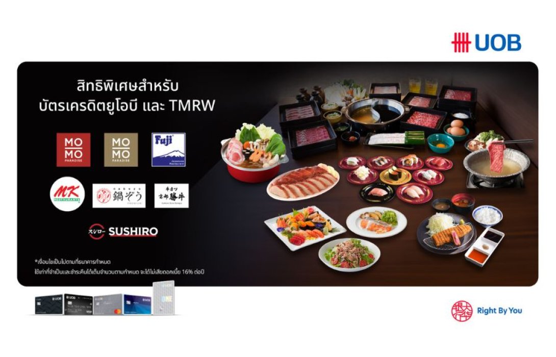 "ยูโอบี" ผนึกร้านอาหารชื่อดัง 7 แบรนด์ยักษ์ใหญ่จัดแคมเปญพิเศษ สุขสุดคุ้มเอาใจนักชิม สำหรับผู้ถือบัตรเครดิตยูโอบีเท่านั้น