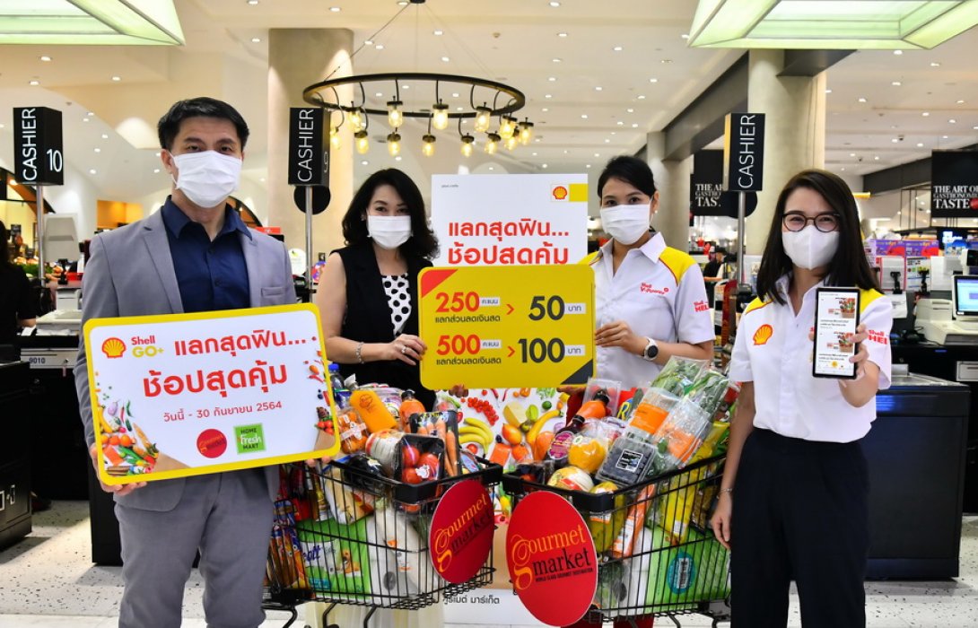 ศุภวุฒิ ไชยประสิทธิ์กุล ผู้อำนวยการใหญ่บริหารสินค้าซุปเปอร์มาร์เก็ต บริษัท เดอะมอลล์ กรุ๊ป จำกัด จับมือ สุวรา สุปรียธิติกุล รองกรรมการบริหารฝ่ายการตลาด ธุรกิจค้าปลีก ประจำประเทศไทย บริษัท เชลล์แห่งประเทศไทย จำกัด จัดแคมเปญ “Shell Go+ แลกสุดฟิน ช้อปสุดคุ้ม” มอบความคุ้มค่าให้สมาชิก Shell GO+ (เชลล์ โก พลัส) เมื่อช้อปปิ้งสินค้า ที่ Gourmet Market ทุกสาขาที่ร่วมรายการ นำคะแนนสะสมแลกรับคูปองส่วนลดสูงสุด 100 บาท กดรับสิทธิ์ผ่านแอปฯ Shell GO+ หรือ https://www.shellgoplus.com/th-th/ ตั้งแต่วันนี้ – 30 กันยายน 2564