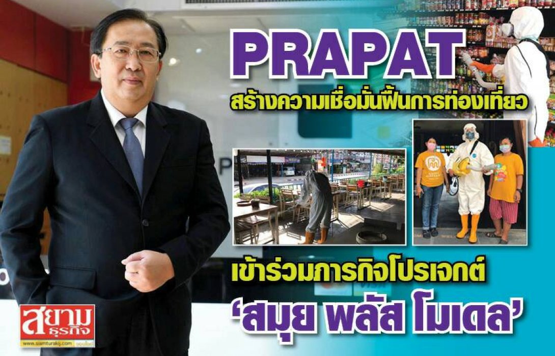 ทั้งนี้ ในช่วงวิกฤตการณ์โควิด-19 ทั้งคู่ค้าและผู้ประกอบการธุรกิจหลายราย ต่างได้รับผลกระทบจากสถานการณ์ดังกล่าว ซึ่งส่งผลกระทบถึงธุรกิจของ PRAPAT อย่างหลีกเหลี่ยงไม่ได้ ด้วยเหตุนี้ บริษัท จึงวางกลยุทธ์ในการช่วยเหลือคู่ค้าและผู้ประกอบการในทุกพื้นที่ทั่วประเทศ เพื่อให้ก้าวผ่านวิกฤตครั้งนี้ไปด้วยกัน โดยเฉพาะที่เกาะสมุย จังหวัดสุราษฎร์ธานี บริษัท ได้จัดกิจกรรมส่งเสริมการขาย ภายใต้แคมเปญ “100 X 100 ฝ่าวิกฤตโควิด-19” บริการฉีดพ่นฆ่าเชื้อให้กับโรงแรม 100 รายแรกฟรี ในพื้นที่ 100 ตารางเมตรแรก พร้อมรับใบประกาศนียบัตรสัญลักษณ์มาตรฐานความปลอดภัยด้านสุขอนามัยของบริษัท PRAPAT รวมถึง การจัดแคมเปญ “ SAMUI SANDBOX” , “Fogger Clear Safe Package” และจัดโปรโมชั่นลดราคาชุดน้ำยาทำความสะอาดจาก PRAPAT ให้ผู้ประกอบการได้เลือกใช้บริการ เริ่มตั้งแต่เดือนกรกฎาคม ไปจนถึงเดือนกันยายน 2564