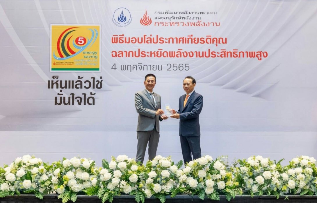 "ลามิน่า" รับมอบฉลากประหยัดเบอร์ 5 จากกระทรวงพลังงาน ต่อเนื่อง 5 ปีซ้อน