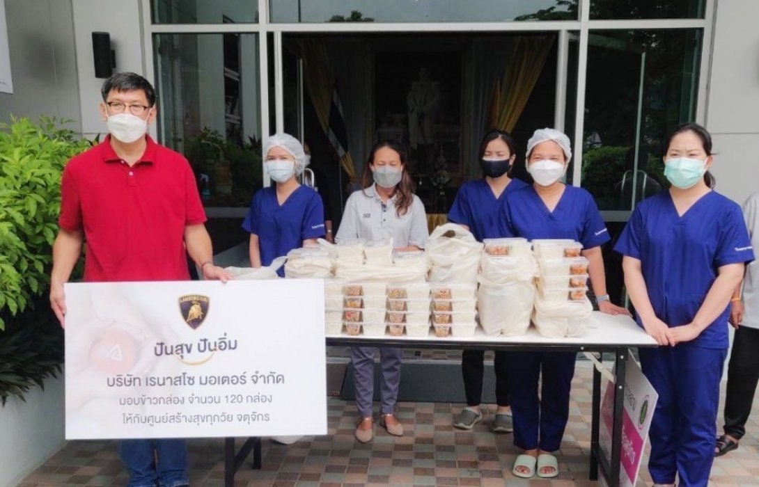 บริษัท เรนาสโซ มอเตอร์ จำกัด ตัวแทนจำหน่ายรถยนต์ลัมโบร์กินีอย่างเป็นทางการรายเดียวในประเทศไทยตอกย้ำเจตนารมณ์ในการร่วมเป็นส่วนหนึ่งของสังคม ผุดโปรเจค "ปันสุข ปันอิ่ม" เพื่อสนับสนุนผู้ประกอบการร้านอาหารขนาดเล็กที่ได้รับผลกระทบจากสถานการณ์การระบาดของโควิด-19 ตลอดจนบรรเทาความเดือดร้อนให้แก่ผู้ติดเชื้อที่กักตัวในชุมชนในพื้นที่กรุงเทพมหานคร โดยส่งมอบอาหารกล่องที่ปรุงสดใหม่เป็นที่เรียบร้อยแล้วรวม 1,500 กล่อง ตลอดเดือนกันยายนที่ผ่านมา อาทิ ชุมชนสามัคคีร่วมใจ บางเขน, โรงพยาบาลรามาธิบดี มหาวิทยาลัยมหิดล, ชุมชนชายคลองเสนานิคม เขตจตุจักร, โรงพยาบาลจุฬาลงกรณ์ สภากาชาดไทย, ศูนย์สร้างสุขทุกวัย เขตจตุจักร