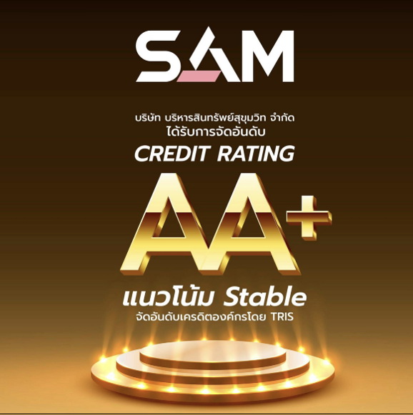 SAM ได้รับการจัดอันดับเครดิตองค์กรจากTRISที่ระดับ“AA+”ด้วยแนวโน้มอันดับเครดิต“Stable” หรือ “คงที่” ชูบทบาท AMC ภาครัฐ เตรียมระดมทุนออกหุ้นกู้ Q2 ปี 65 รองรับหนี้เสียหลังโควิด ช่วยฟื้นฟูลูกหนี้และระบบสถาบันการเงิน