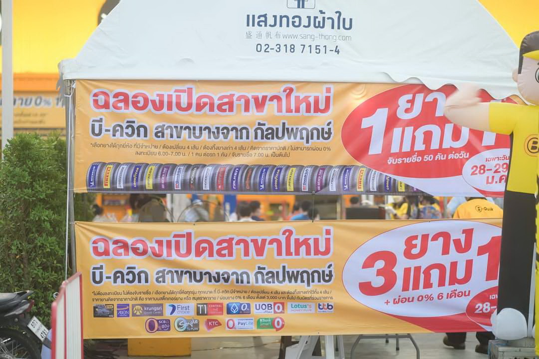 ยางซื้อ 1 แถม 1 ทุกยี่ห้อ ทุกรุ่น ทุกขนาด (จับรายชื่อ 50 คัน ต่อวัน / ลงทะเบียนเวลา 06.00 น. และจับรายชื่อ 07.00 น.)