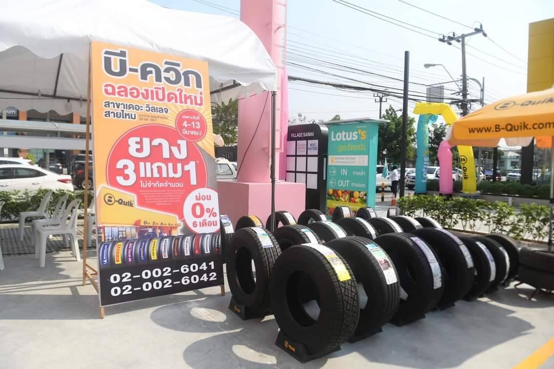 บริษัท บี-ควิก จำกัด โดยเฟซบุ๊กเพจ B-Quik เต็มที่เพื่อรถ เต็มร้อยเพื่อคุณแจ้งข่าวเมื่อเร็วๆ นี้ ว่า สายไหม คึกๆ คักๆ โปรฯ #ยาง3แถม1 10 วันเท่านั้น วันนี้ ถึง 13 มี.ค. 65 ฉลองเปิดใหม่ บี-ควิก สาขาเดอะ วิลเลจ สายไหม (ระหว่างซ.สายไหม 56 และ 56/1)โปรโมชั่นพิเศษมากมาย*