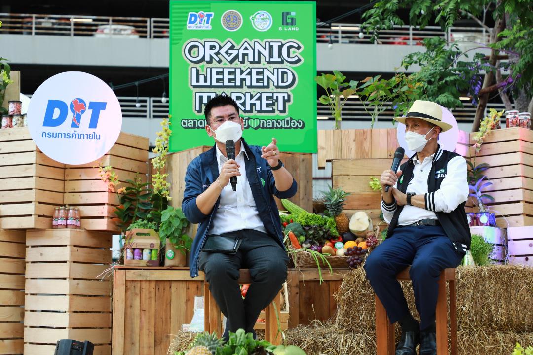 “ORGANIC WEEKEND MARKET 2022” กำหนดจัดขึ้นในช่วงวันหยุดสุดสัปดาห์ ตั้งแต่วันที่ 18 ก.พ. – 27 มี.ค. 65 ตั้งแต่เวลา 15.00 - 21.00 น. ณ G Garden ซึ่งขณะนี้ได้จัดงานไปได้แล้ว 3 สัปดาห์ และได้รับผลตอบรับเกินความคาดหมาย มีจำนวนผู้เข้าร่วมงานหมื่นกว่าราย เกิดการจับคู่เจรจาธุรกิจแล้ว 63 คู่ และมีมูลค่าการจำหน่าย/ยอดการเจราจาธุรกิจและยอดสั่งซื้อภายใน 1 ปี กว่า 200 ล้านบาท โดยกรมฯ ตั้งเป้างานนี้จะสร้างมูลค่าซื้อขายได้ถึง 350 ล้านบาท สำหรับภาคเอกชนรายใหญ่ที่เข้าร่วมการเจรจาการค้าในช่วงที่ผ่านมา อาทิ บิ๊กซี ซูเปอร์เซ็นเตอร์, Bangkok Instrument Center เทรดเดอร์รายใหญ่ที่จัดหาสินค้าเข้าสู่อุตสาหกรรมค้าปลีกทั้งในและต่างประเทศ, สุขทุกคำ ผู้ประกอบการด้านอีคอมเมิร์ซ, สบายดีการ์เด้น ผู้ประกอบการภัตตาคารและธุรกิจบริการอาหารนอกสถานที่ (แคเทอริ่ง), Creative Spaceship เทรดเดอร์ที่จัดหาสินค้าจากไทยไปจำหน่ายในช่องทางออนไลน์ในประเทศจีน, Kaspy แพลทฟอร์มซื้อขายสินค้าเกษตรออนไลน์รายใหญ่, Flora Multi Solution เทรดเดอร์ผู้ส่งสินค้าไปจำหน่ายในประเทศลาวและสหรัฐอาหรับเอมิเรตส์ (UAE) เป็นต้น โดยมีสินค้าที่ได้รับความสนใจ 5 อันดับแรก ได้แก่ ผักและผลไม้ เครื่องปรุงรส สมุนไพรและน้ำมันนวด เครื่องสำอาง และอาหารสด/แปรรูป”