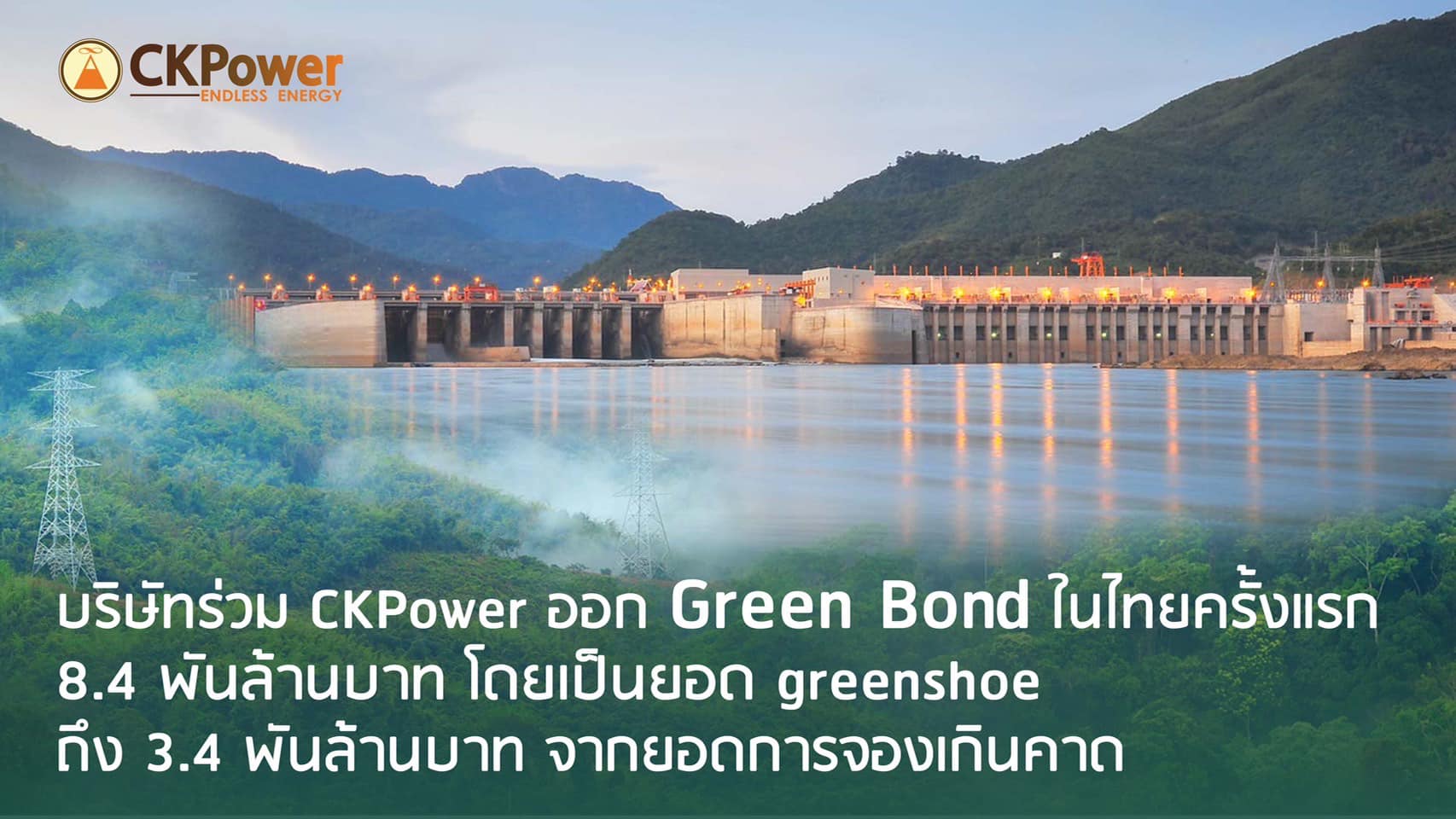 บริษัทร่วม CKPower ออก Green Bond ในไทยครั้งแรก 8.4 พันล้านบาท โดยเป็นยอด greenshoe ถึง 3.4 พันล้านบาท จากยอดการจองเกินคาด