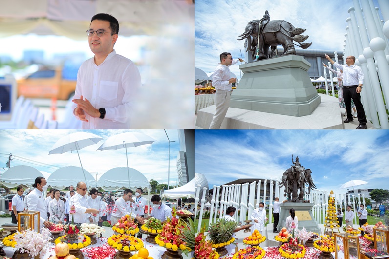 “เป็นที่ทราบกัน บางกอกแลนด์ ดำเนินธุรกิจอสังหาริมทรัพย์ในประเทศไทยมายาวนานและบริษัทฯ ใช้สัญลักษณ์ช้างเอราวัญหรือช้างสามเศียรมาตลอด ในโอกาสครบรอบ 50 ปี เพื่อเสริมความเป็นสิริมงคลยิ่งขึ้น จึงได้อัญเชิญพระอินทร์ซึ่งเป็นเทพองค์เดียวที่ทรงช้างเอราวัณมาประดิษฐาน โดยจัดตั้งโครงการประติมากรรมพระอินทร์ทรงช้างเอราวัณ ซึ่งได้ปรึกษาผู้ชำนาญงาน ทั้งประติมากร ทีมช่างศิลปะ ช่างสิบหมู่ รับเชิญมาร่วมงานจนสำเร็จลุล่วงด้วยดี ถือเป็นอีกหนึ่งโครงการที่จะนำพาความเป็นสิริมงคล มาให้ทั้งกับผู้บริหาร พนักงาน เป็นขวัญกำลังใจในการทำงานนำพาองค์กรเติบโตอย่างมั่นคงตลอดไป”