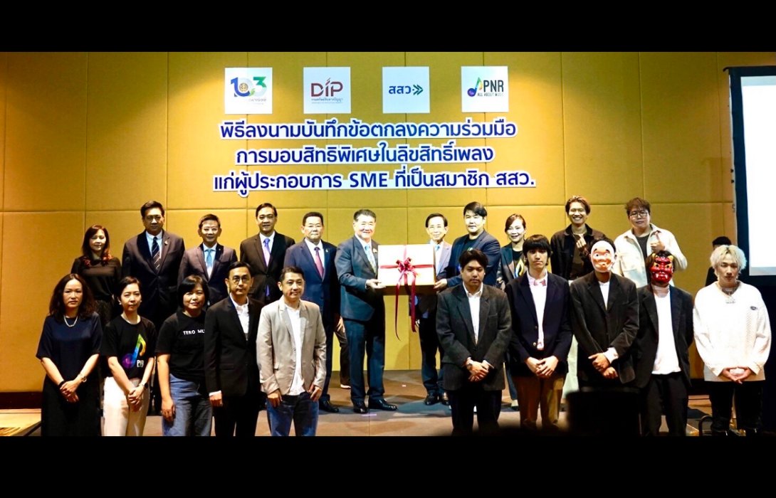 สสว. x DIP x PNR ร่วมลงนาม MOU ช่วยเอสเอ็มอีลดค่าใช้จ่ายเรื่องลิขสิทธิ์ มอบเป็นของขวัญปีใหม่ให้เอสเอ็มอีที่เป็นสมาชิก สสว. เปิดเพลงยกคลัง ฟินฟรีไม่ยั้ง 3 เทศกาล “ปีใหม่ ตรุษจีน และ วาเลนไทน์ ” เพื่อช่วยเรื่องส่งเสริมการขาย