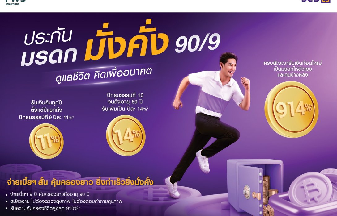 ภายใต้กลยุทธ์ Digital Bank with Human Touch ของธนาคาร โดยมีเป้าหมายที่จะรักษาความเป็นผู้นำในธุรกิจการบริหารความมั่งคั่ง ด้วยการใช้เทคโนโลยีและการบริการอย่างไร้รอยต่อ เราเล็งเห็นเทรนด์ประชากรศาสตร์ของประเทศไทย ที่คนมีคุณภาพชีวิตและสุขภาพดีขึ้น ส่งผลให้มีแนวโน้มอายุยืนยาวนานมากขึ้น ธนาคารฯ จึงเปิดศักราชปี 2567 นี้ด้วยการเปิดตัวประกันมรดก มั่งคั่ง 90/9 ที่มาพร้อมสโลแกนดูแลชีวิต คิดเผื่ออนาคต ซึ่งเป็นประกันชีวิตแบบตลอดชีพที่ธนาคารคิดเผื่อให้ผู้ที่ต้องการวางแผนทางการเงิน และส่งต่อมรดก ให้สามารถสร้างกระแสเงินสดให้ตนเอง และสร้างความมั่งคั่งให้คนที่รักและห่วงใยในอนาคตได้ โดยจุดเด่นของประกันมรดก มั่งคั่ง 90/9 คือชำระเบี้ยประกันภัย 9 ปี คุ้มครองชีวิตยาวถึงอายุ 90 ปี สามารถสร้างกระแสเงินสดให้ลูกค้าได้ในระยะยาว ในรูปแบบของเงินคืนรายปีตั้งแต่ปีแรกจนถึงอายุ 89 ปี ทุกปี สูงสุดถึงปีละ 14% ของจำนวนเงินเอาประกันภัย รับเงินก้อนเมื่อครบสัญญา 914% ของจำนวนเงินเอาประกันภัย รับประกันภัยตั้งแต่อายุ 20 – 70 ปี สมัครง่ายไม่ต้องตรวจและไม่ต้องตอบคำถามสุขภาพ และในกรณีที่เกิดเหตุการณ์ไม่คาดฝันรับเงินก้อนเป็นมรดกให้ทายาทสูงสุดถึง 910% ของจำนวนเงินเอาประกันภัย
