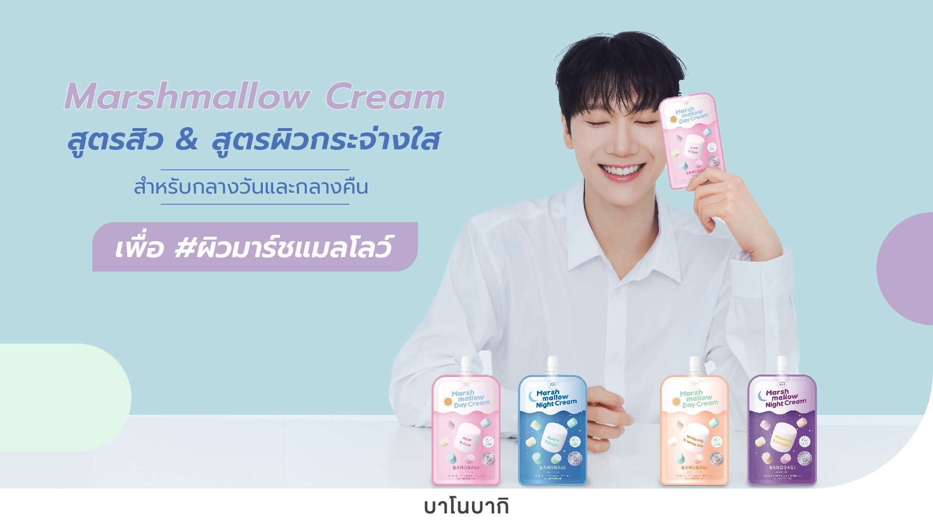 ล่าสุด บาโนบากิเปิดตัวผลิตภัณฑ์ใหม่ล่าสุดที่เป็น Non-Mask อย่าง Marshmallow Cream (มาร์ช แมลโลว์ ครีม) ครีมบำรุงผิวหน้าสำหรับกลางวันและกลางคืน ที่จะช่วยให้ผิวแลดูเนียนใส นุ่มเด้ง อิ่มน้ำ สวยฉ่ำสไตล์เกาหลี คิดค้นและพัฒนาโดยแพทย์ผู้เชี่ยวชาญจากโรงพยาบาลบาโนบากิ นำโดย ดร.อีวังแจ (Dr. Lee Wang Jae), ดร. บันแจซัง (Dr. Barn Jae Sang), ดร. โอชังฮยอน (Dr. Oh Chang Hyun) และ ดร. บันแจยง (Dr. Ban Jae Yong) ซึ่งอุดมด้วยส่วนผสมคุณภาพสูงเทียบเท่าสกินแคร์ระดับเคาน์เตอร์แบรนด์ อาทิ Turmeric ที่มีส่วนช่วยให้ผิวกระจ่างใส มีทั้งหมด 4 สูตร คือ Marshmallow Day Cream 2 สูตร ได้แก่ Acne & Cica และ Whitening & White Star กับ Marshmallow Night Cream 2 สูตร ได้แก่ Acne & Salicylic และ Whitening & Emblica ซึ่งจะเริ่มทยอยวางจำหน่ายในช่วงเดือนกรกฎาคม 2567 นี้ เฉพาะที่ร้าน Watsons ทุกสาขาทั่วประเทศ รวมถึงเตรียมเซอร์ไพรส์กับไลน์ผลิตภัณฑ์ใหม่ล่าสุดที่จะทำการเปิดตัวเร็วๆ นี้