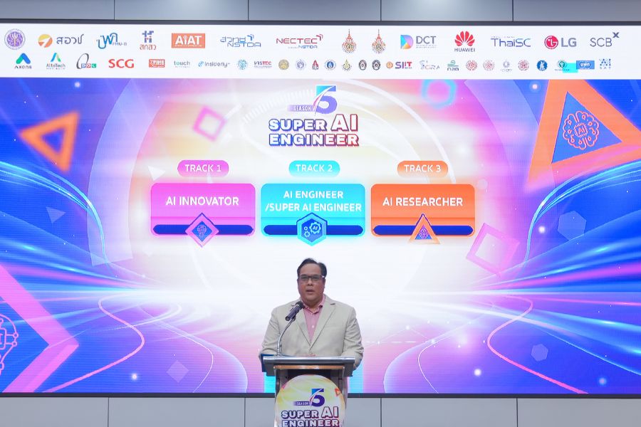 สำหรับโครงการ Super AI Engineer ในปีนี้เป็น Season ที่ 5 แล้ว ซึ่งตั้งแต่ Season 1-4 ที่ผ่านมา ก็ได้รับความสนใจเป็นอย่างมาก มีผู้สมัครเข้าร่วมโครงการรวมมากกว่า 33,000 คน และ Super AI Engineer Season 5 นี้ เป็นการเสริมสร้างและพัฒนาศักยภาพบุคลากรให้มีทักษะด้านปัญญาประดิษฐ์ที่สามารถเข้าสู่อุตสาหกรรมได้จริง มีศักยภาพทัดเทียมระดับสากล ภายใต้กำลังคน 3 กลุ่ม ได้แก่ นวัตกร (AI Innovator) วิศวกร (AI Engineer) และนักวิจัยระดับสูง (AI Researcher) พร้อมต่อยอดเป็นผู้ประกอบการวิสาหกิจเริ่มต้น (AI Solopreneur/AI Entrepreneur) และเป็นผู้มีทักษะในการถ่ายทอดและแลกเปลี่ยนความรู้ได้ (AI Instructor) รวมไปถึงการพัฒนาระบบนิเวศการพัฒนากำลังคนด้านปัญญาประดิษฐ์ (AI Workforce Development Ecosystem) และกระตุ้นความสนใจและเกิดความร่วมมือเข้าสู่การพัฒนาศักยภาพปัญญาประดิษฐ์ให้กับประชาชนทุกระดับ และสุดท้ายเป็นการสร้างกรอบมาตรฐานคุณวุฒิวิชาชีพด้านปัญญาประดิษฐ์ เชื่อมโยงไปยังธนาคารหน่วยกิต (Credit Bank) ที่มีอยู่ให้รองรับการพัฒนากำลังคนด้านปัญญาประดิษฐ์ขั้นสูง