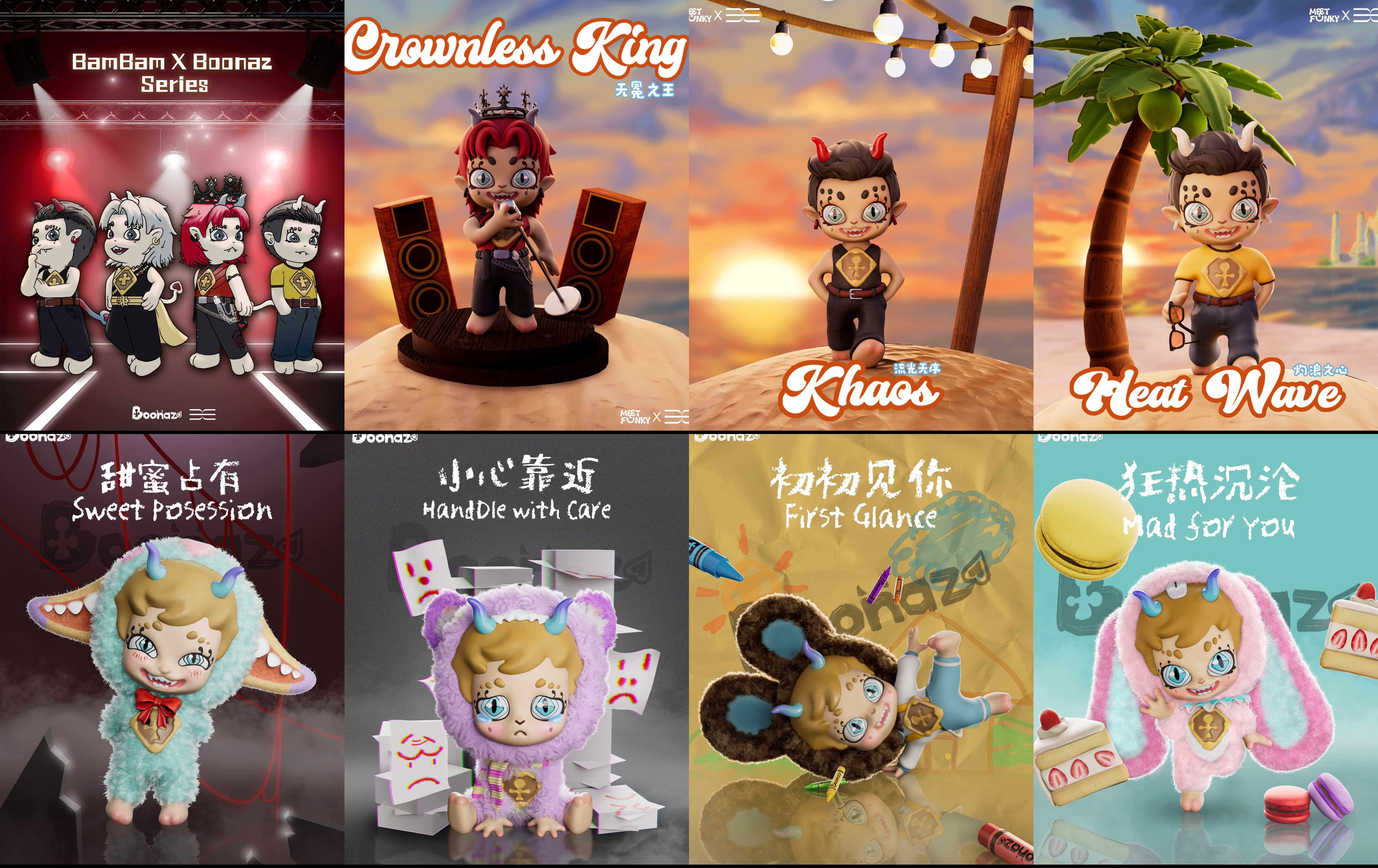 ไฮไลต์ของคอลเลกชันนี้ คือการร่วมงานกับไอค่อนระดับโลก “แบมแบม” กันต์พิมุกต์ ภูวกุล” หรือ BamBam GOT7 โดยการนำเสนอพลังความคิดสร้างสรรค์และสไตล์อันมีเอกลักษณ์ของเขา ซึ่งสอดคล้องกับจิตวิญญาณของ Boonaz อย่างสมบูรณ์แบบ แบมแบมไม่ได้เป็นเพียงศิลปิน แต่คือตัวแทนของ ‘ด้านแห่งแสงสว่าง’ ผู้ที่กล้าเปล่งประกายและซื่อสัตย์ต่อตัวเอง ซึ่งสะท้อนคอนเซ็ปต์ ‘The Courage to Express Yourself’ ได้อย่างชัดเจนที่สุด โดยแบมแบมยังมีส่วนร่วมในกระบวนการสร้างสรรค์อย่างใกล้ชิด ตั้งแต่การหารือเกี่ยวกับภาพลักษณ์หลัก (Key Visuals) ไปจนถึงการเสนอแนวคิดเพื่อเพิ่ม ‘พลังและเสน่ห์บนเวที’ ให้กับคาแรกเตอร์ Boonaz ทำให้มอนสเตอร์น้อยตัวนี้ดูมีชีวิตชีวาและเป็นสัญลักษณ์ของพลังบวกอย่างแท้จริง โดยในโปรเจกต์นี้ แบมแบมได้มีส่วนร่วมในกระบวนการครีเอทีฟ ตั้งแต่การร่วมออกแบบ Key Visual การเลือกโทนสีของคาแรกเตอร์ ไปจนถึงแนวคิดของแคมเปญ เพื่อให้ Boonaz ถ่ายทอดพลังและความมีชีวิตชีวาในแบบ “on-stage energy”