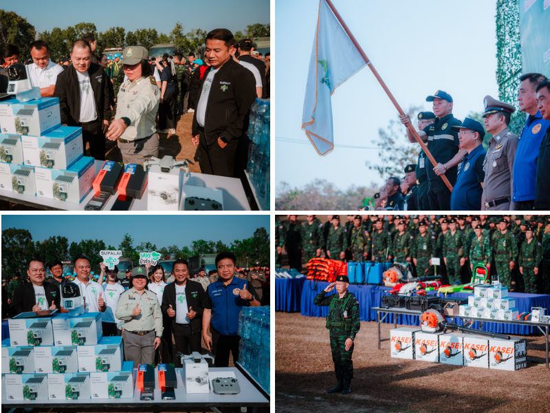 นอกจากนี้ยังสนับสนุน เครื่องเป่าใบไม้ (เครื่องยนต์ 2 จังหวะ) เพื่อช่วยเคลียร์เชื้อเพลิงในแนวกันไฟและสนับสนุนการทำงานภาคสนาม รวมถึง โทรศัพท์มือถือแบบ RUGGED Phone สำหรับการระบุพิกัด บันทึกข้อมูล สื่อสารระหว่างลาดตระเวนไฟป่าในพื้นที่ และเชื่อมสัญญาณภาพจากกล้อง CCTV และ โดรน DJI Mini 4K เพื่อใช้สำรวจมุมสูง ประเมินสถานการณ์ ตรวจสอบแนวไฟ/แนวควันเบื้องต้น ช่วยลดความเสี่ยงต่อเจ้าหน้าที่และเพิ่มประสิทธิภาพในการบริหารจัดการเหตุไฟป่าได้ดียิ่งขึ้น