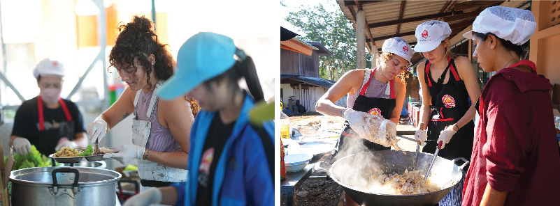 อีกหนึ่งความพิเศษของปีนี้ คือ การร่วมมือกับ The Yard Hostel เชียงใหม่ โฮสเทลที่อบอุ่นของนักเดินทางทั่วทุกมุมโลก อันเกิดจากความตั้งใจของ คุณส้ม (เล็ก) - อติพร สังข์เจริญ และคุณส้ม (ใหญ่) - อมรรัตน์ อมรศิริชัยรัตน์ ผู้ก่อตั้ง The Yard Hostel นำทีม “นักท่องเที่ยวต่างชาติ” ที่เคยเข้าร่วม Cooking Class มาร่วมเป็นอาสาสมัคร ปรุงอาหารไทยสดใหม่ให้น้องๆ ทั้งยังได้แลกเปลี่ยนวัฒนธรรมกับเด็กในชุมชน เกิดเป็นภาพของ Cross-cultural Collaboration เชื่อมโยงความสัมพันธ์ระหว่างชุมชนท้องถิ่นกับผู้มาเยือนต่างแดน ความร่วมมือนี้สะท้อนว่าการท่องเที่ยวสามารถผสานกับการพัฒนาสังคมได้อย่างสร้างสรรค์และยังช่วยเผยแพร่วัฒนธรรมอาหารไทยสู่สายตาชาวต่างชาติอีกทางหนึ่ง