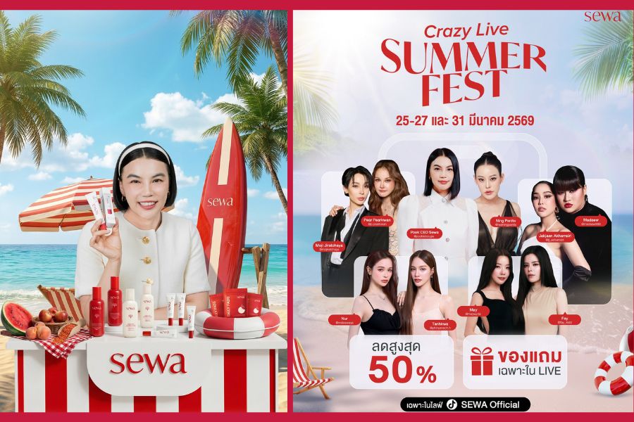 Sewa (เซวา) แบรนด์สกินแคร์สัญชาติไทยตำนานน้ำตบโสม 2,000 ปี ที่ครองใจสาวไทยและทั่วโลกอย่างต่อเนื่อง ล่าสุดเขย่าวงการบิวตี้ เดินหน้ารุกตลาดสกินแคร์รับฤดูร้อน เปิดตัวผลิตภัณฑ์ใหม่ “Sewa UV Skin Barrier Sunscreen SPF50+ PA++++” กันแดดสูตรไฮบริดที่ผสานการปกป้องผิวจากรังสี UV มลภาวะ และความร้อน พร้อมเสริมเกราะผิวให้แข็งแรงในหนึ่งเดียว พร้อมเปิดแคมเปญใหญ่ “Crazy Live Summer Fest” ชูกลยุทธ์ Influencer Live Commerce Marathon ดึงอินฟลูเอนเซอร์และครีเอเตอร์ร่วมไลฟ์ต่อเนื่องหลายวัน สร้างประสบการณ์ “Content-to-Commerce” แบบเรียลไทม์ ตอบรับพฤติกรรมผู้บริโภคยุคดิจิทัลที่ผสานความบันเทิงและการซื้อสินค้าเข้าด้วยกัน