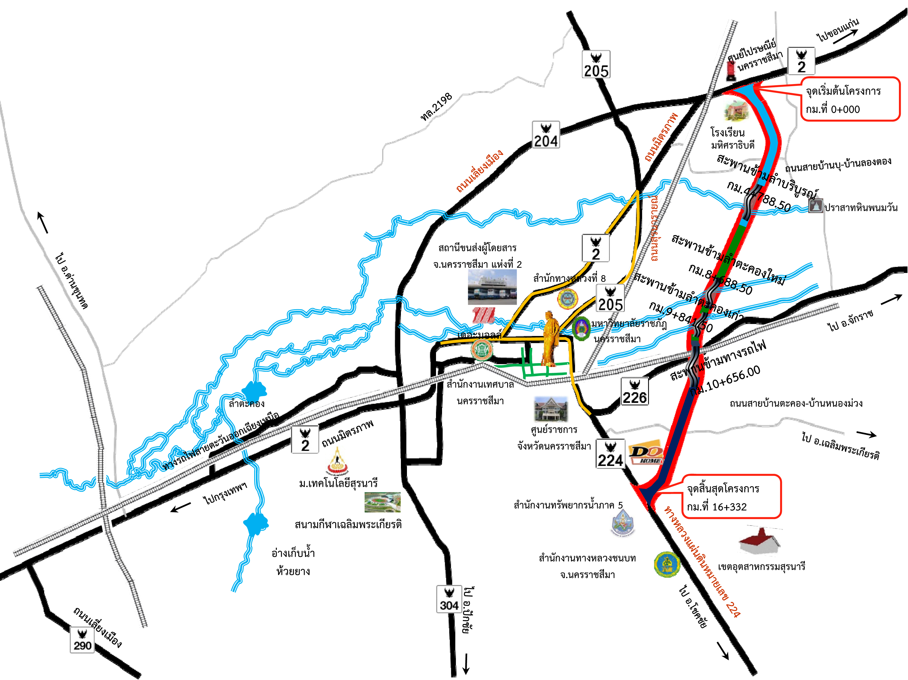 โดยได้ก่อสร้างแล้วเสร็จและเปิดให้ประชาชนได้ใช้สัญจรในปี 2560 ก่อสร้างเป็นถนนแอสฟัลท์ติกคอนกรีตขนาด 4 ช่องจราจร ระยะทางประมาณ 16 กิโลเมตร เชื่อมระหว่างทางหลวงหลัก 3 สาย ได้แก่ ทางหลวงหมายเลข 2 ทางด้านทิศเหนือของสายทาง ทางหลวงหมายเลข 226 ช่วงกลางสายทาง และทางหลวงหมายเลข 224 ทางด้านทิศใต้ของสายทาง ซึ่งถนนสายดังกล่าวเมื่อเปิดใช้แล้วจะทำหน้าที่เชื่อมโครงข่ายวงแหวนรอบเมืองนครราชสีมาให้สมบูรณ์ ระบายการจราจรในเขตเมือง บรรเทาปัญหาการจราจรติดขัด ตลอดจนรองรับการเจริญเติบโตของเมืองอีกด้วย