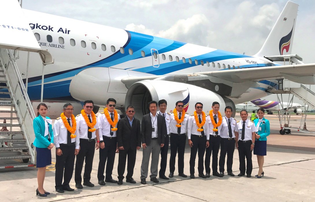 บริษัท การบินกรุงเทพ จำกัด (มหาชน) หรือสายการบินบางกอกแอร์เวย์ส นำโดย กัปตัน พล.อ.ท.เดชิศร์ เจริญวงศ์ รองกรรมการผู้อำนวยการใหญ่ ฝ่ายปฏิบัติการบิน (ที่ 7 จากขวา) พร้อมทีมนักบิน ร่วมต้อนรับเครื่องบินแบบแอร์บัส A319 ลำใหม่ล่าสุด ณ ท่าอากาศยานสุวรรณภูมิ